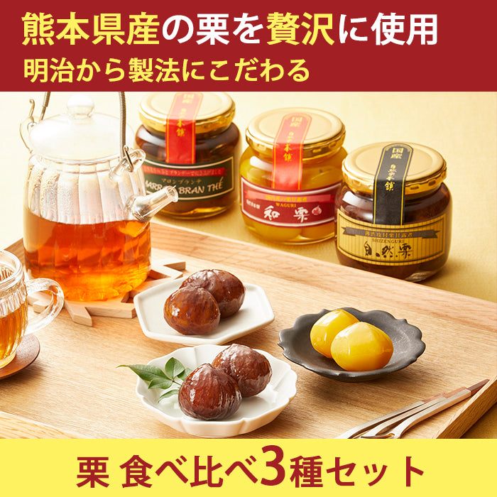 国産 熊本県産 栗 渋皮煮・甘露煮・ブランデー漬「栗食べ比べ3種セット」自然栗・和栗・マロンブランテ