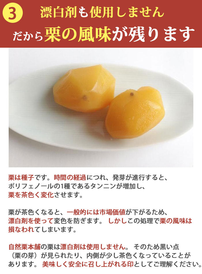 熊本産の栗を使い、殺虫処理なし、漂白剤不使用