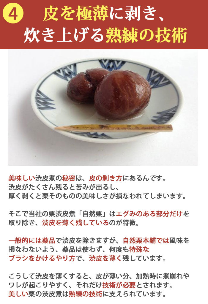 市販のものとは一味違う、栗屋の栗甘露煮をご賞味ください。