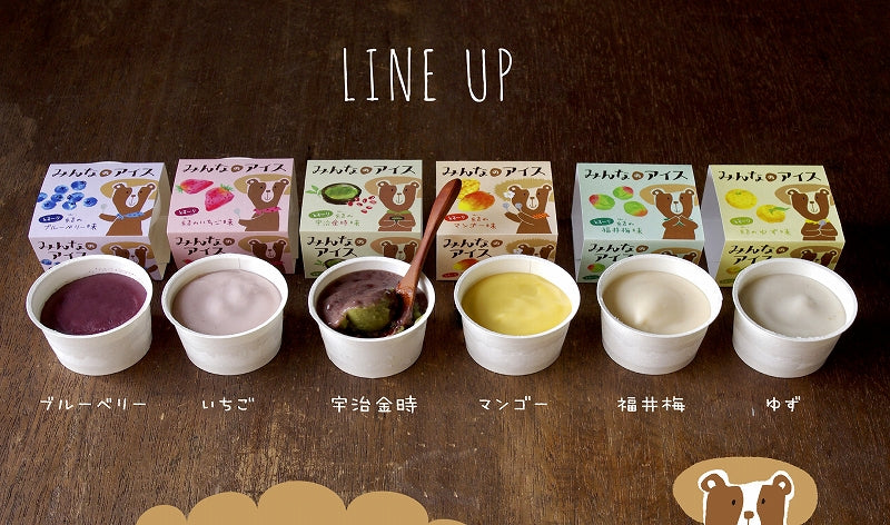 みんなのアイス 6種各2個 計12個セット(ブルーベリー・いちご・宇治抹茶・マンゴー・福井梅・ゆず)【アレルギー特定原材料7品目ゼロ】【脂肪分ゼロ】【福井県産サトイモ使用】