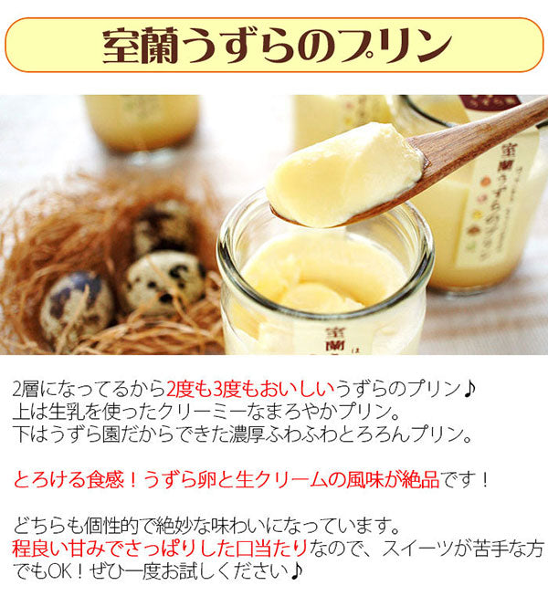 北海道、室蘭、洋菓子、スイーツ、うずら、ウズラ、卵、タマゴ、ぷりん、カステラ、厳選素材、ご当地、ふるさと、お取り寄せ、産直、産地直送、詰合せ、詰め合わせ、セット、ギフト、GIFT、贈りもの、贈り物、御礼